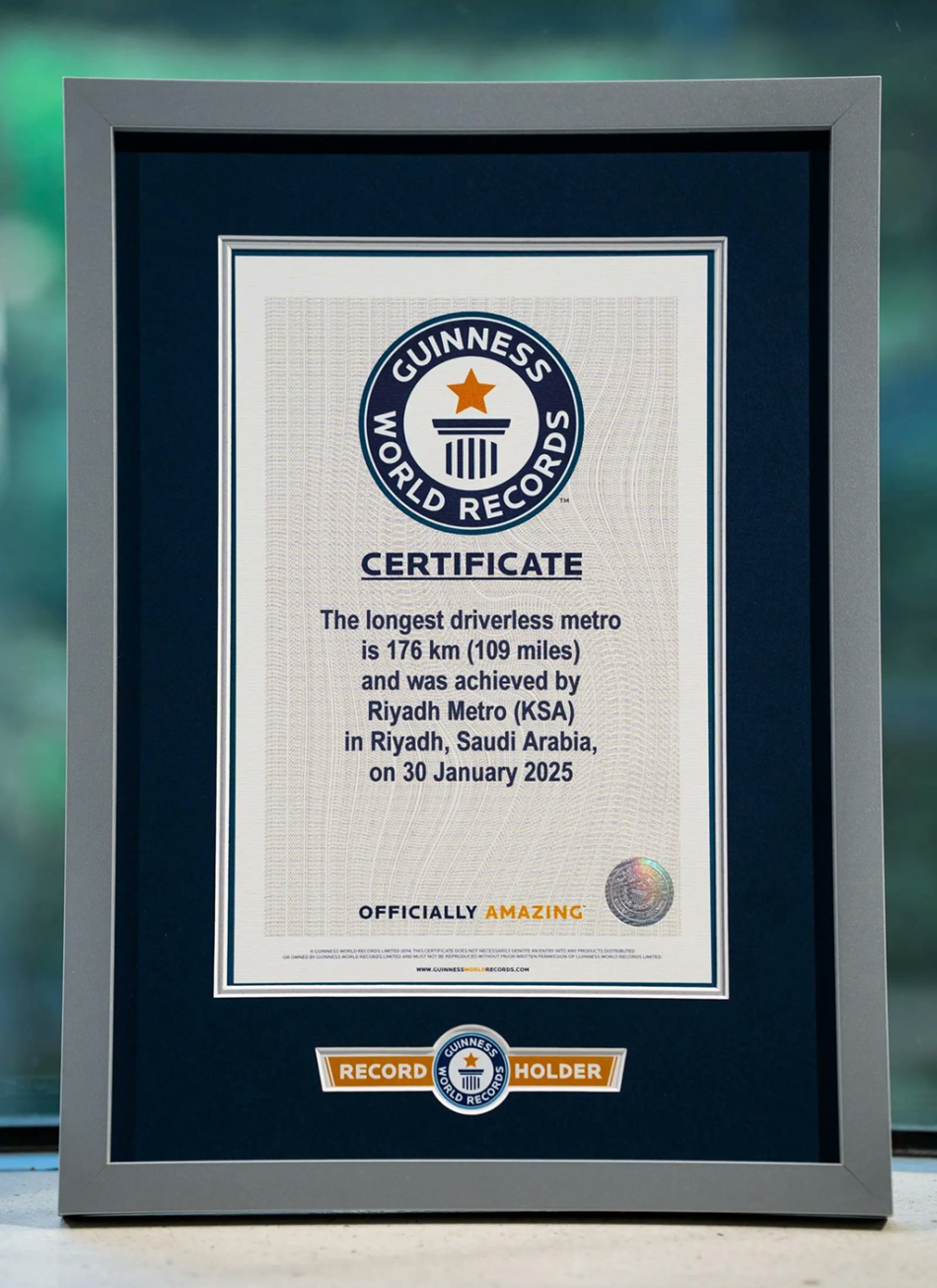The Riyadh Metro has achieved a global milestone after being officially recognized by Guinness World Records as the longest fully driverless rail network in the world, spanning 176 kilometers—a landmark that underscores the Kingdom’s rapid progress in developing modern and sustainable urban mobility systems.