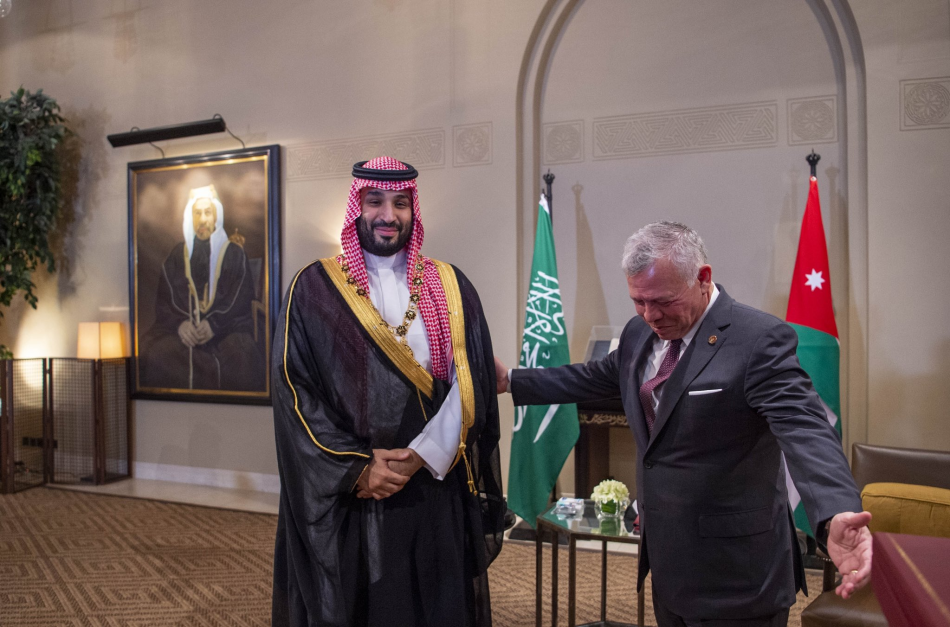 عمّان - عقد صاحب السمو الملكي الأمير محمد بن سلمان بن عبدالعزيز آل سعود ولي العهد نائب رئيس مجلس الوزراء، لقاءً اليوم، مع جلالة الملك عبدالله الثاني بن الحسين ملك المملكة الأردنية الهاشمية، بحضور صاحب السمو الملكي الأمير الحسين بن عبدالله الثاني ولي العهد في المملكة الأردنية الهاشمية، وجلسة مباحثات موسعة بحضور وفدي البلدين وذلك بالعاصمة الأردنية عمان.