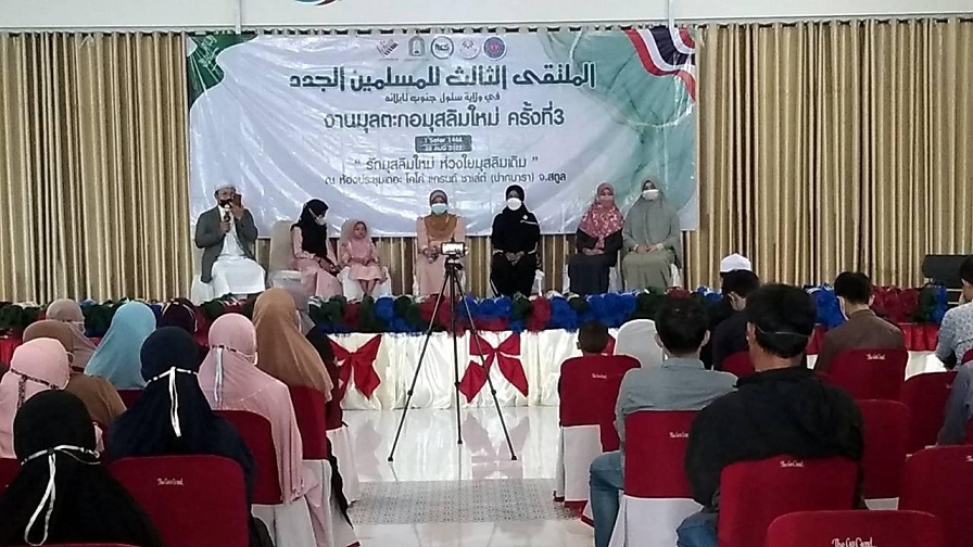 بث: نظمت وزارة الشؤون الاسلام والدعوة والارشاد ممثلة بمكتب المستشار الاسلامي بسفارة خادم الحرمين الشريفين في بانكوك بمملكة تايلند الملتقى الثالث للمسلمين الجدد يوم أمس وذلك بمقر قاعة الاجتماع بفندق كوكو دائرة لانجو بولاية ستول بجنوب تايلاند، الذي ينفذ بالتعاون مع جمعية سنابل التعليمة للتنمية الاجتماعية، حيث حظي الملتقى بمشاركة العديد من الأساتذة والدعاة المتميزون في هذا المجال عبر محاضرات وندوات علمية تأصيلية.
