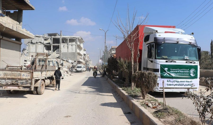 توزيع الإغاثة السعودية العاجلة لمتضرري الزلزال في منطقة جندريس السورية