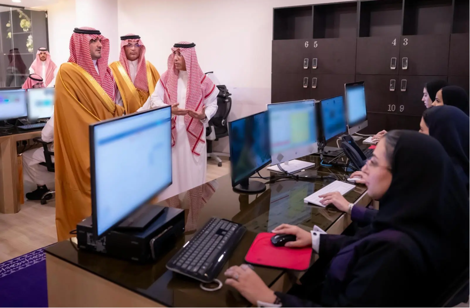 استمع سموّه إلى شرحٍ من المشرف على الوكالة اللواء الدكتور صالح بن سعد المربّع حول مركز العناية بالعملاء والخدمات المقدّمة للمستفيدين.