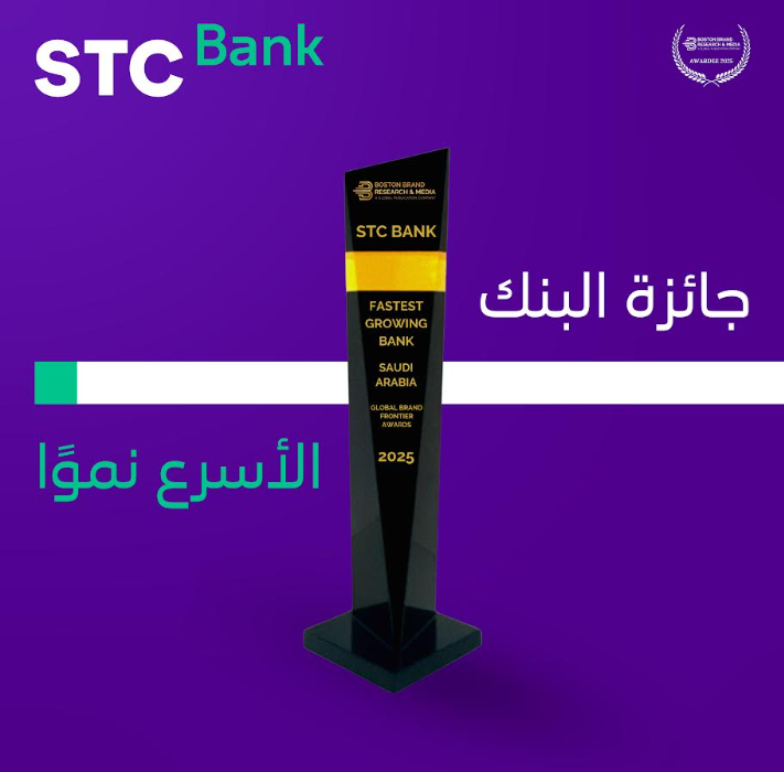 حصد STC Bank جائزة "البنك الأسرع نموًا في السعودية لعام 2025"، ضمن جوائز Global Brand Frontier التي تنظمها مؤسسة بوسطن براند للأبحاث والإعلام العالمية، والتي تكرم سنويًا المبادرات والشركات الرائدة التي حققت إنجازات استثنائية في قطاعات مختارة.