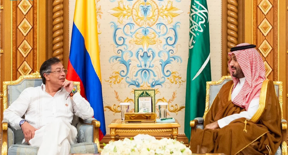 استقبل سمو ولي العهد فخامة الرئيس غوستافو بيترو أوريغو، رئيس جمهورية كولومبيا، والوفد المرافق له، حيث استُعرضت العلاقات الثنائية وفرص التعاون في مختلف المجالات الاستثمارية والتنموية، في ضوء الاهتمام المشترك بتطوير الشراكات الاقتصادية بين البلدين.