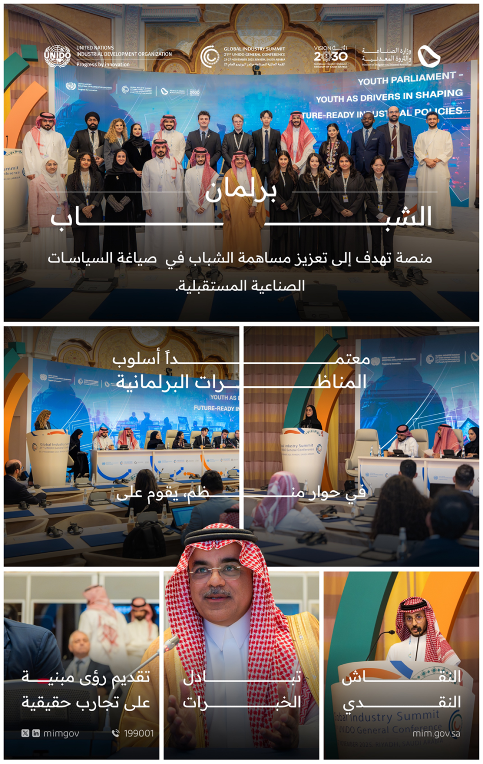 وفي يوم الشباب ضمن أعمال الدورة الـ21 للمؤتمر العام لليونيدو، ألقى معالي وزير الصناعة والثروة المعدنية الأستاذ بندر بن إبراهيم الخريف كلمة رئيسية خلال جلسة بعنوان: