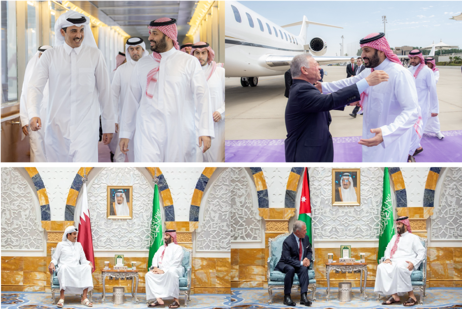 عُقد في جدة لقاء ثلاثي جمع الأمير محمد بن سلمان، والملك عبدالله الثاني، والشيخ تميم بن حمد، في إطار تنسيق المواقف تجاه التصعيد العسكري في المنطقة.