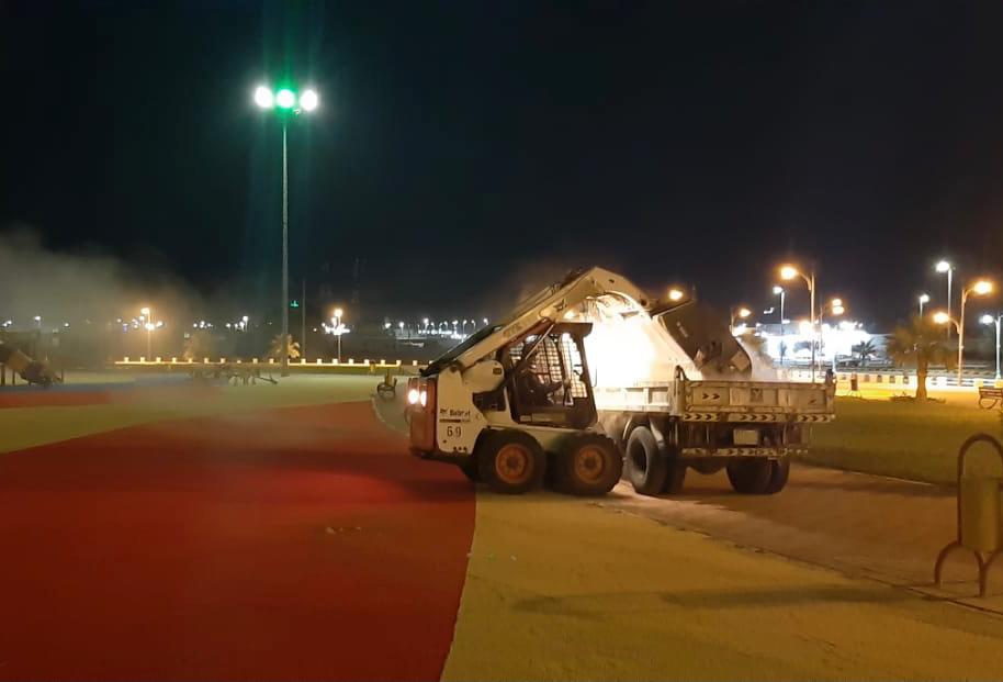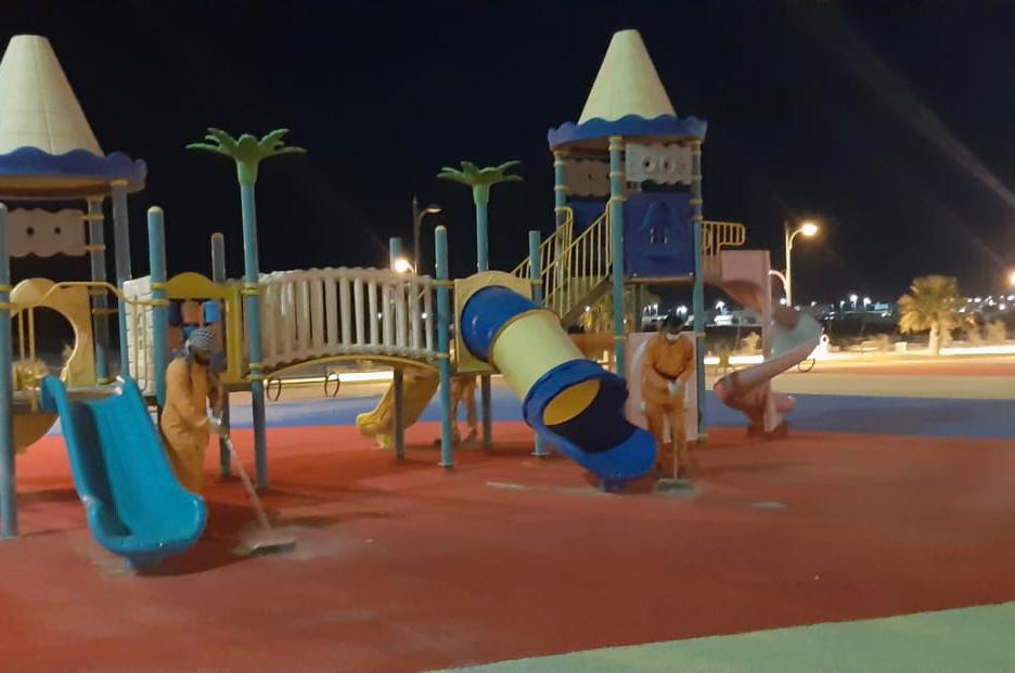 وذكر المهندس الشرافي بأن البلدية ممثلة بإدارة الخدمات كثفت العمل على صيانة وتنظيف الحدائق العامة بكافة الهجر الواقعة داخل نطاق البلدية، بالإضافة الى تكثيف الحملات الرقابية على محلات الحلاقة والحرص على جاهزيتها وتطبيق الاشتراطات الخاصة بها من أدوات نظيفة ومعقمة، ومتابعة المنشآت العدائية من مطاعم وبوفيهات وأسواق تموينية ومحلات الخضار والفواكه، والتأكيد على التزام المنشآت والعاملين فيها بكافة الاحترازات والاشتراطات الصحية لمنع انتشار فيروس كورونا.