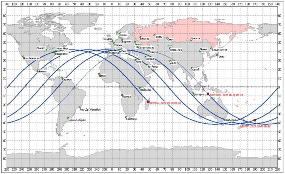 وذكرت “روس كوسموس” على قناتها الرسمية في تطبيق “تيليغرام” اليوم السبت أن المرحلة الثانية الخارجة عن السيطرة من الصاروخ Long March 5B (والتي يبلغ وزنها 18 طنا) قد تصل غلاف الأرض بعد الساعة الـ02:30 من فجر يوم غدالأحد بتوقيت موسكو( والسعودية)، التاسع من مايو في منطقة بحر تيمور جنوبي إندونيسيا.