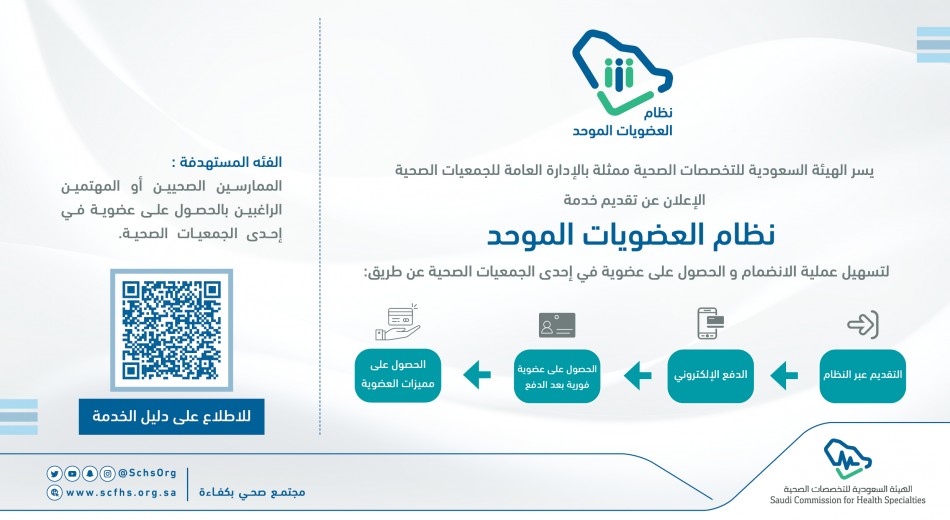 التخصصات الصحية تفعل نظام العضويات الموحد للجمعيات الصحية
