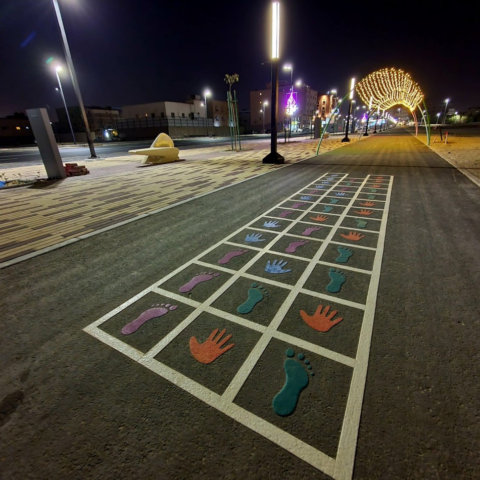 هذا بالإضافة الى تنفيذ ممشى ملون بعرض 4 أمتار وطول 500 متر، وهو ممشى نوعي تم تصميمه بفكرة ما يعرف بـ (Tactical Urbanism) حيث أنه يحتوي على عدة عناصر تفاعلية مثل ألعاب حركية للأطفال بعضها يحاكي الألعاب التراثية وبعضها ألعاب تعليمية وتثقيفية والبعض الأخر رسومات فنية هندسية تضفي روح البهجة والنشاط للزوار.
